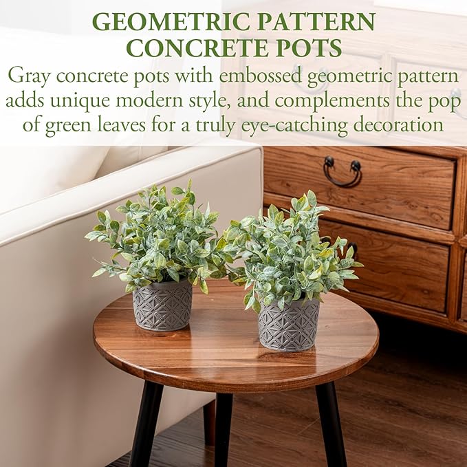 - Made from premium, fade-resistant materials, these artificial plants and sturdy concrete pots are built to last, requiring no watering or pruning—ideal for indoor use