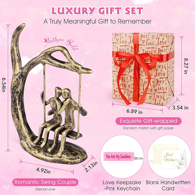 - Eternal Couple Iron Sculpture: Our inspiring swing couple figurine cast iron sculpture through unique appearance to represent an emotion or mark a memory, deeply express love, closeness, healing, courage, hope, all the meaningful relationship of a life well lived. Awesome iron gifts for her or him at any time. It will always bring a happy smile and a romantic feel. And the cute size of it is 4.92 x 2.13 x 6.54 inches, adding a touch of elegance to any space