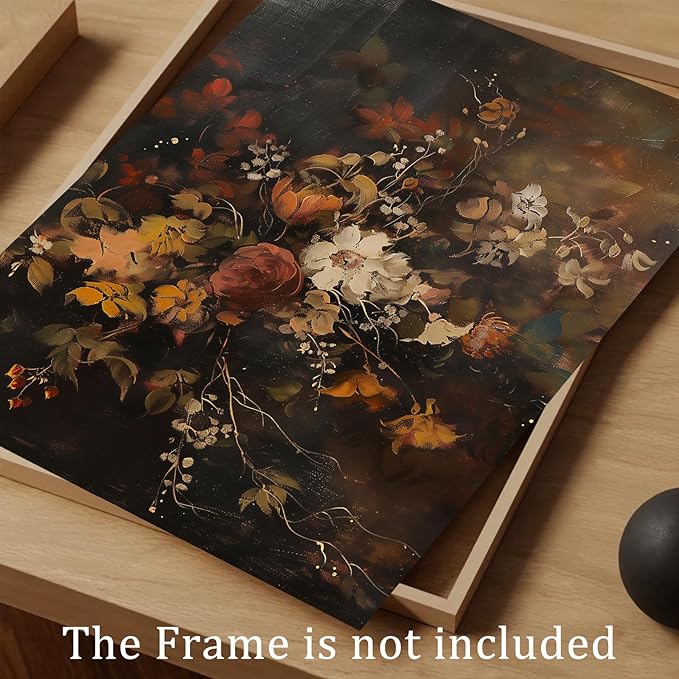 uniro Vintage Floral Wall Art Print, Moody Dark Autumn Flower Wall Painting, Retro Botonical Fall Wall Decor, Vintage Posters for Room Aesthetic for Bedroom Living Room Bathroom Wall Decor(8" x 10"-UNFRAMED)