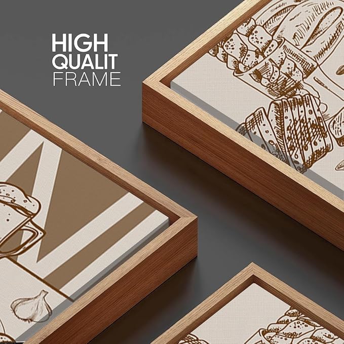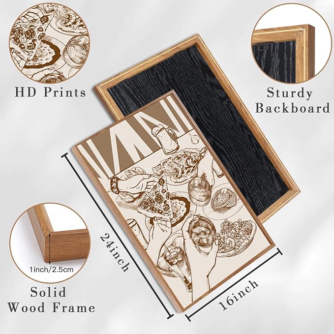 ANHUIB Framed Canvas Wall Art 16x24 Inch Large Modern Cheers Wall Decor Vintage Food Wall Art Sketch Pizza Paintings Gathering Decor Set of 3 for Kitchen Dining Room