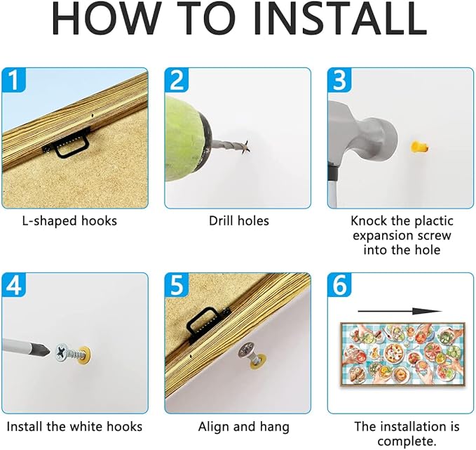 - 【Easy to Hang】Each large kitchen wall art has a hook on the back and comes with a mounting tool. All you need to do is to measure the wall size in advance, and you can easily hang the painting on the wall once you receive it!