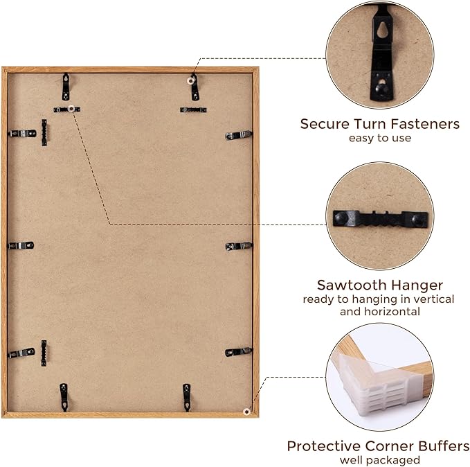 - SLEEK & MINIMALIST HOME DECOR - The neutral oak finish of this wood picture frame set brings out all of the color in your poster, drawing attention to it like never before, you can display your artwork in the most sophisticated way possible with. The excellent craftsmanship and neutral color make it a classic addition to any room - or office! Also a great gift for birthdays, anniversaries, housewarmings, Christmas, Thanksgiving, Hanukkah, and just about any occasion