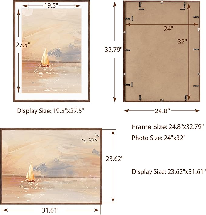 - WELL PACKAGED - Each 24"x32" picture frame is shrink-wrapped and secured with corner protectors, all of our 24 x 32 wood frames are packaged in custom-made corrugated boxes so your frames arrive in pristine condition