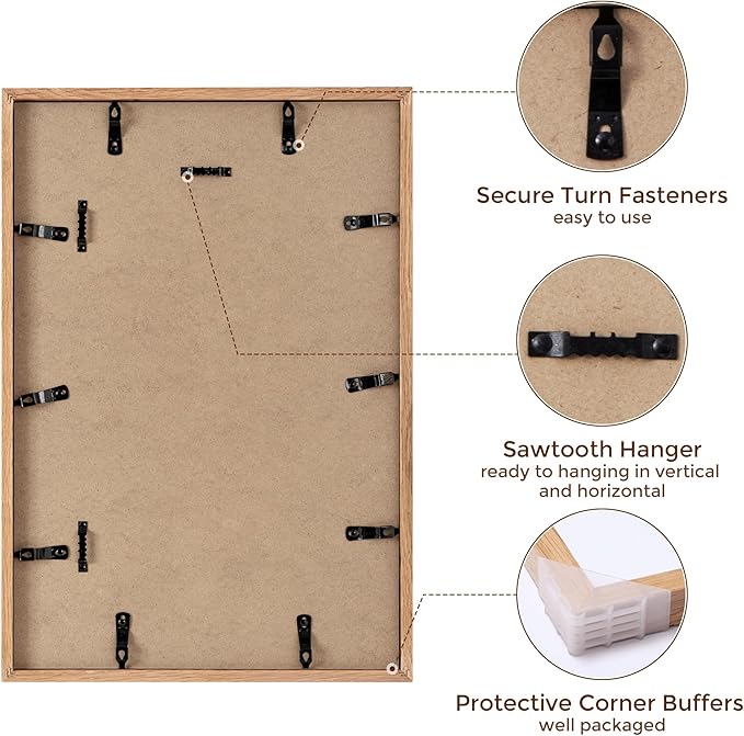- SLEEK & MINIMALIST HOME DECOR - The neutral oak finish of this wood picture frame set brings out all of the color in your poster, drawing attention to it like never before, you can display your artwork in the most sophisticated way possible with. The excellent craftsmanship and neutral color make it a classic addition to any room - or office! Also a great gift for birthdays, anniversaries, housewarmings, Christmas, Thanksgiving, Hanukkah, and just about any occasion