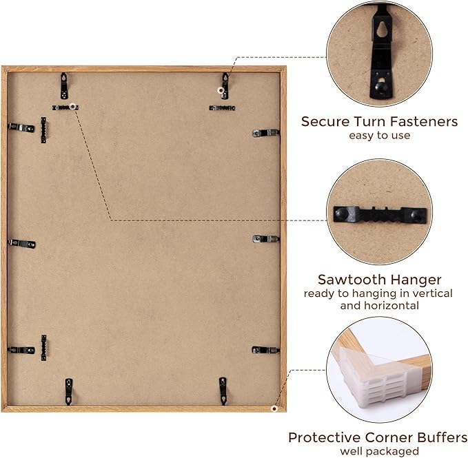 - SLEEK & MINIMALIST HOME DECOR - The neutral oak finish of this wood picture frame set brings out all of the color in your poster, drawing attention to it like never before, you can display your artwork in the most sophisticated way possible with. The excellent craftsmanship and neutral color make it a classic addition to any room - or office! Also a great gift for birthdays, anniversaries, housewarmings, Christmas, Thanksgiving, Hanukkah, and just about any occasion