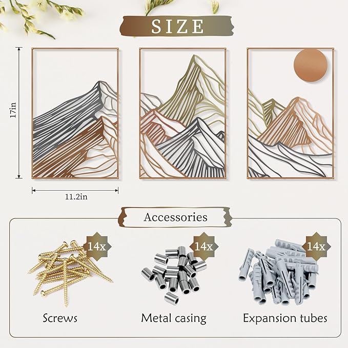 - Simple Mountain Design: This metal mountain wall art uses simple lines to outline the mountains, and the colors are layered, which will bring you a real touch and make you feel the breath of nature and a peaceful feeling at home.