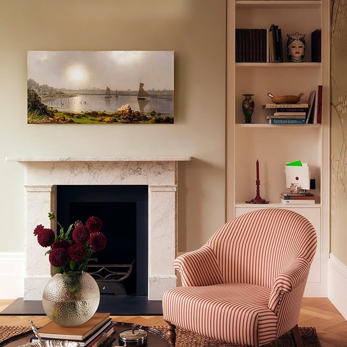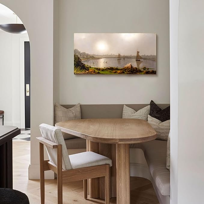 crmotu Large Canvas Wall Art, Harbor Landscape Vintage Art Prints, Coastal Sun Sailboat Scenery Nature Pictures, Retro Nautical Paintings Wall Decor Living Room Bedroom Bathroom Office Decor 20"X40"