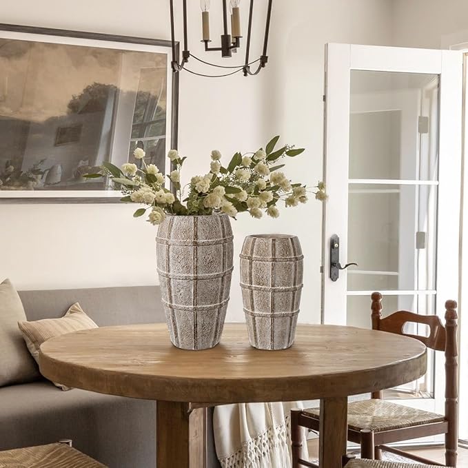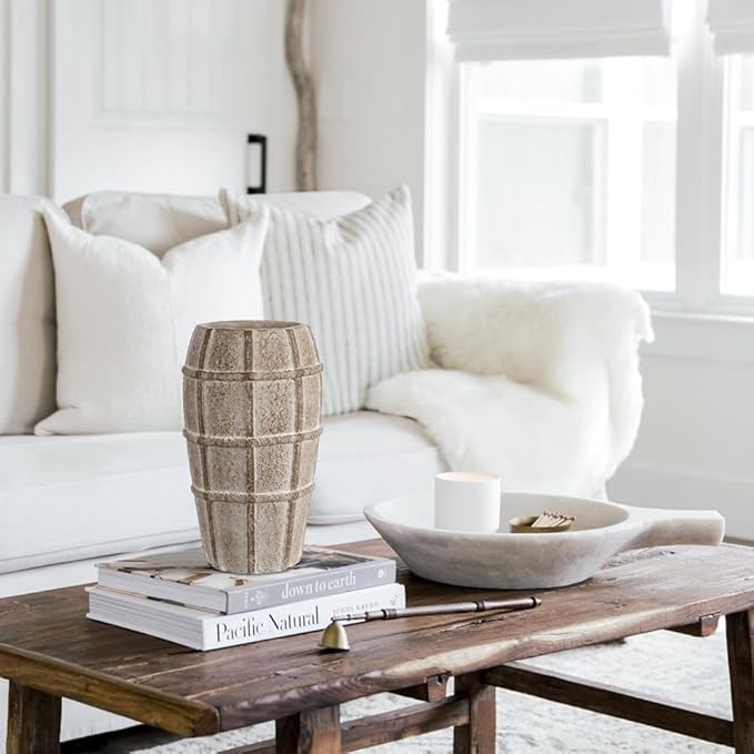- Thoughtful Gift Option: More than just a rustic vase, this handcrafted ceramic piece doubles as a striking decorative accent and a meaningful gift. Its vintage barrel-inspired design and stone-textured finish bring natural charm to any space. A tasteful choice for housewarmings, holidays, weddings, etc.