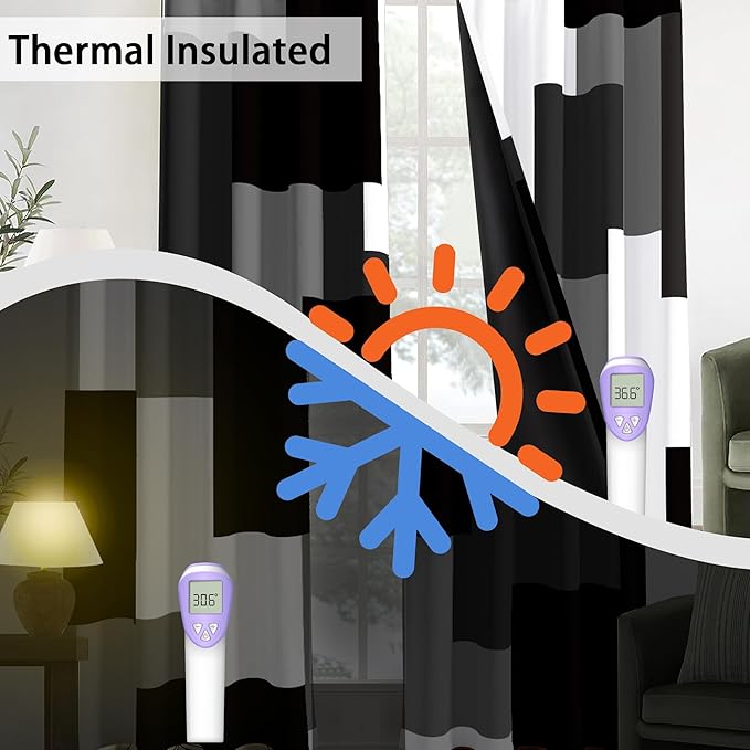 - ⬛THERMAL INSULATING SOUNDPROOF CURTAINS: Our elegant deep grey plaid print thermal insulated drapes can balance indoor and outdoor temperatures well, retain heat indoors during the winter and reject heat in the summer, and effectively energy saving. In addition, it can noise reducing and total privacy, providing a quiet and peaceful environment for you to relax in.