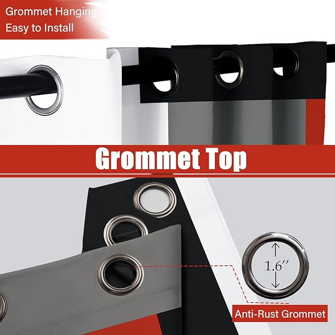 - ๐ฅEFFECTIVE LIGHT BLOCKING: Our red white geometric full blackout curtains with black backs can completely block out 100 percent sunlight even during the sunniest days. Providing you with a dark environment to enjoy your favorite movies or sleep well. Perfect for those who value complete privacy and want to create a peaceful and relaxing environment in their home.