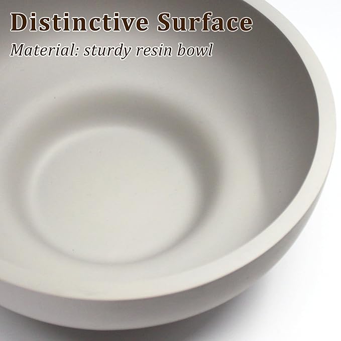 - Durability: Crafted from high-quality resin, this bowl is lightweight yet durable, offering long-lasting use. Available in four versatile colors—beige, black, white and Grey—this bowl complements any decor style effortlessly.