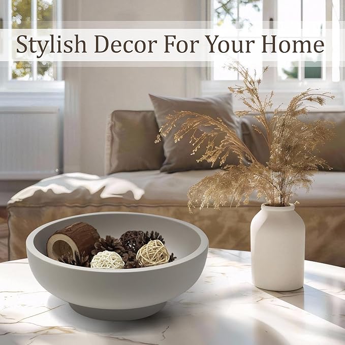 Large Decorative Bowl, Fruit Bowl for Kitchen Counter, Modern Resin Bowl for Home Decor, Key Holder for Entry Table, Grey