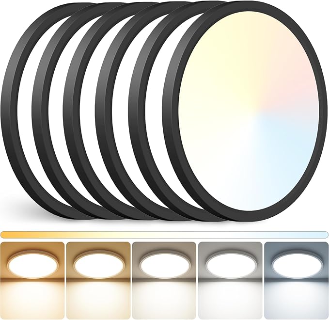 Peasur 12 inch LED Ceiling Light, 3000K/3500K/4000K/5000K/6500K Adjustable Flush Mount Light Fixture,3200LM 28W Thin Black Round Lamp for Hallway Kitchen Bathroom Bedroom, 6Pack