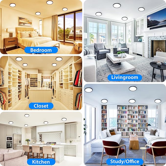 - High CRI & Eye-caring: With an impressive CRI of 85+, this round surface mount light fixture ensures that colors appear true-to-life and vibrant. Equipped with high-quality 2835 LED chips,it delivers stable,uniform,flicker-free light,significantly reducing eye strain and promoting comfortable viewing
