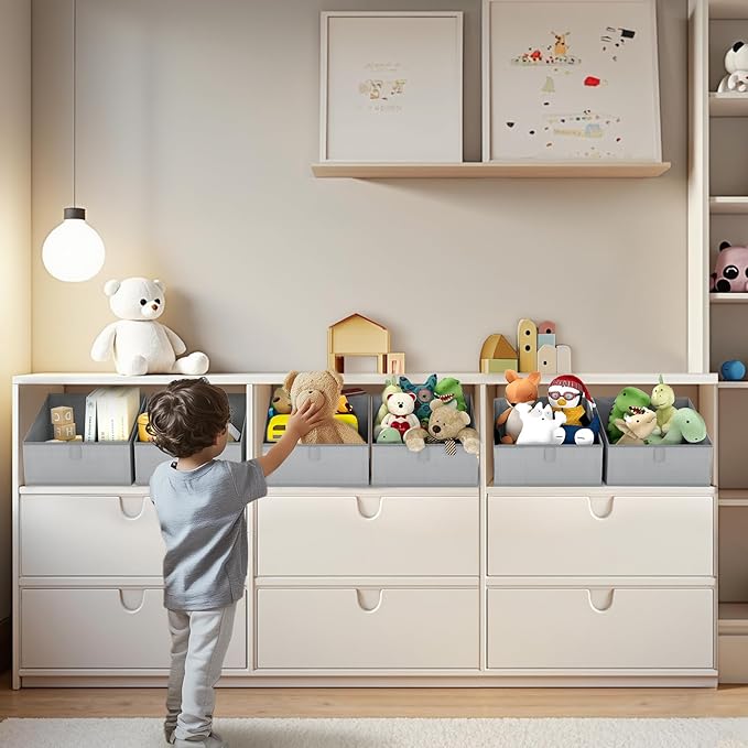 - 【Trapezoidal Design】These storage cubes are Trapezoid design that makes finding things convenient, also allows easy access when putting on the highest shelf. These are ideal closet bins for clothes, bags, shoes, towels, blankets, toys, dolls, and more