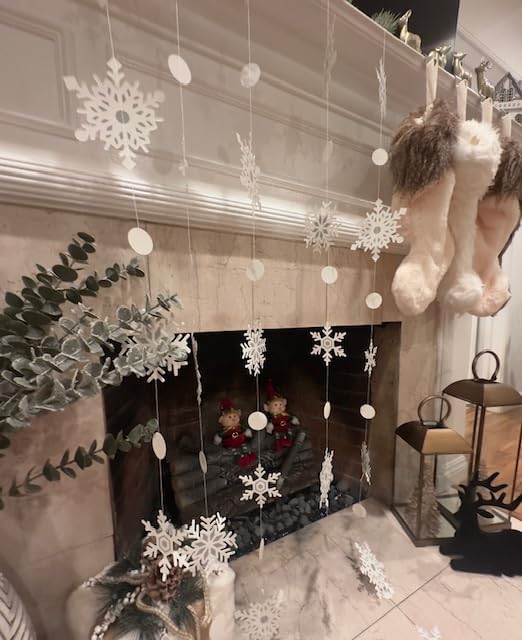 - Perfect Holiday Decor | Our snowflake garland is perfect for Christmas and winter decorating | These snowflake hanging decorations are perfect your home, your classroom or office | Can be used to hand across windows, ceilings and against walls | These Xmas winter snowflakes are a great way to easily and quickly add holiday warmth to your home office or workspace | Perfect for Christmas party, winter wonderland party, winter baby showers and all winter festive gatherings|