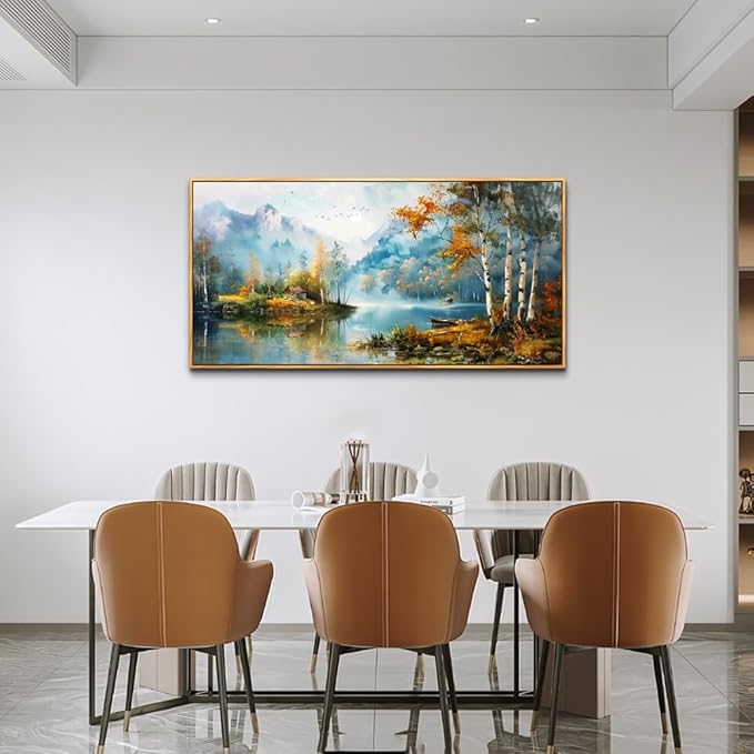 - Gallery-Ready Size & Design:20x40 inches (50x100 cm) lake view framed canvas. Solid wood frame with waterproof finish creates a natural focal point for living rooms or offices.