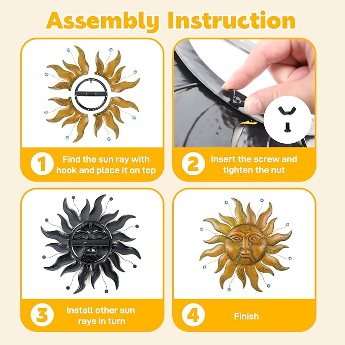 - Widely Used: Sun wall art is a product suitable for indoor and outdoor decoration. You can hang metal wall decor in your living room, bedroom, or study, as well as in your garden, courtyard, or terrace, adding unique decoration to your indoor and outdoor space.