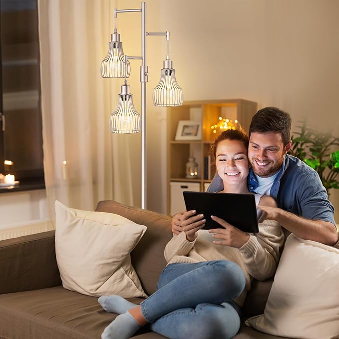 - 【2025 UPGRADED FLOOR LAMPS】- The tall 3-cage light gold floor lamp blends farmhouse and vintage styles to perfectly match any decor in your home.In March, we upgraded our materials to include professionally certified all-metal bodies. Our fixtures are more stable and durable, eliminating problems such as sudden shut-offs and unstable installations. Enjoy superior quality and make life easier and more comfortable.