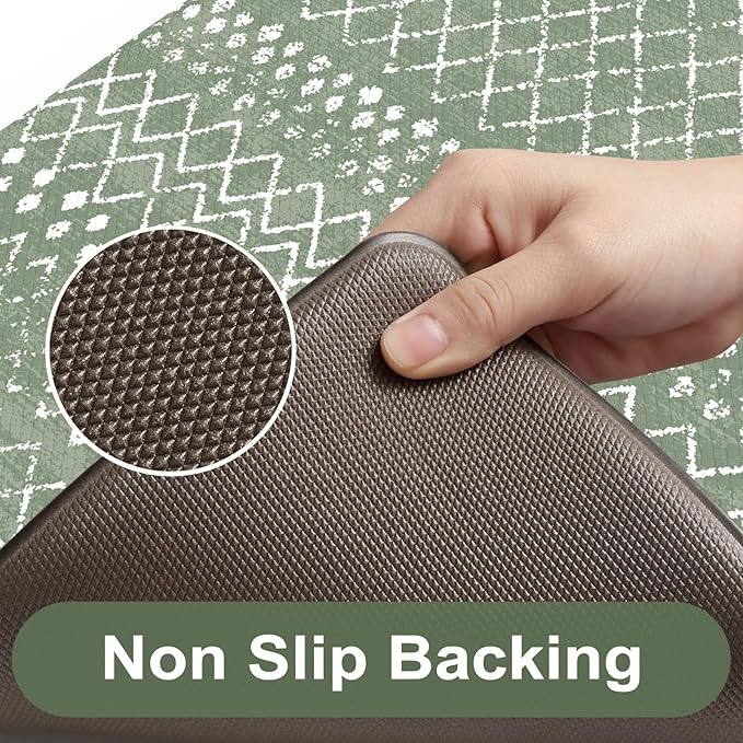 KIMODE Kitchen Anti Fatigue Mats, Green Farmhouse Kitchen Rugs Sets of 2, Memory Foam Kitchen Mats for Floor, Waterproof Standing Mat for Sink Laundry Office Desk 20"x47"+20"x32"