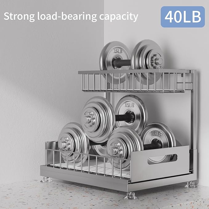 2 Pack Under Sink Organizer Storage 2-Tier Premium Metal Pull-Out Racks, Height Adjustable, Easy Installation | Kitchen & Bathroom Organizers