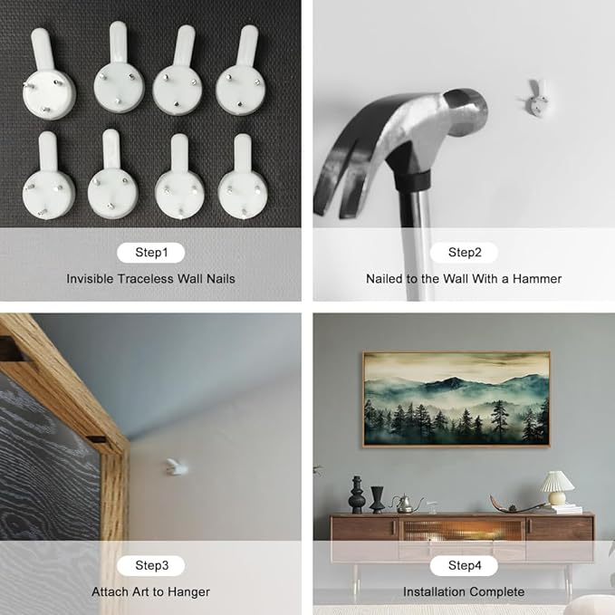 - 【Easy to Hang】20×40 inches×1pc (50×100cm×1pc) neutral foggy pine tree landscape frame set is easy to hang, ready to use, with metal hooks and non-marking nails. It takes only 5 minutes to finish hanging.