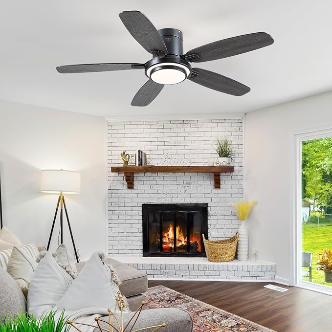 Low Profile Ceiling Fan with Lights and Remote/APP, 50 Inch Modern Flush Mount Ceiling Fan with 3CCT 6-Speeds Quiet DC Motor,Dimmable 3-Color Temperatures for Living Room Bedroom(Black)