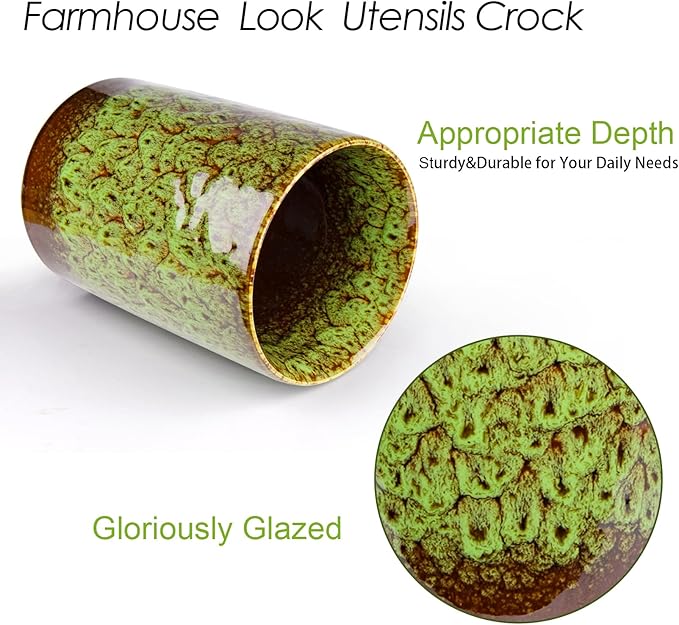 - Easy-Clean Ceramic Construction: Crafted from high-quality kitchen utensils holder material, this heavyweight ceramic crock wipes clean in seconds. Non-porous surface repels grease splatters and resists odors, maintaining kitchen hygiene effortlessly.
