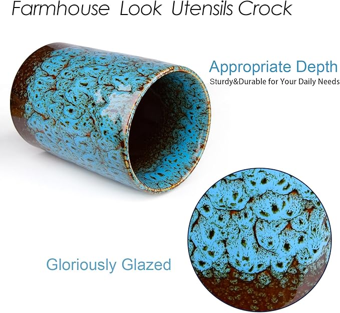 - Easy-Clean Ceramic Construction: Crafted from high-quality kitchen utensils holder material, this heavyweight ceramic crock wipes clean in seconds. Non-porous surface repels grease splatters and resists odors, maintaining kitchen hygiene effortlessly.