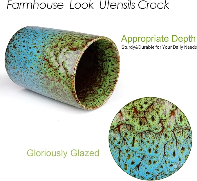 - Easy-Clean Ceramic Construction: Crafted from high-quality kitchen utensils holder material, this heavyweight ceramic crock wipes clean in seconds. Non-porous surface repels grease splatters and resists odors, maintaining kitchen hygiene effortlessly.