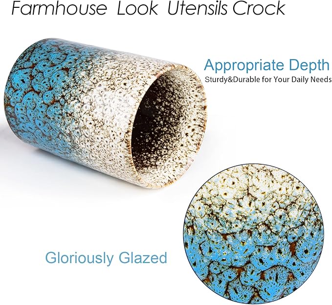 - Easy-Clean Ceramic Construction: Crafted from high-quality kitchen utensils holder material, this heavyweight ceramic crock wipes clean in seconds. Non-porous surface repels grease splatters and resists odors, maintaining kitchen hygiene effortlessly.