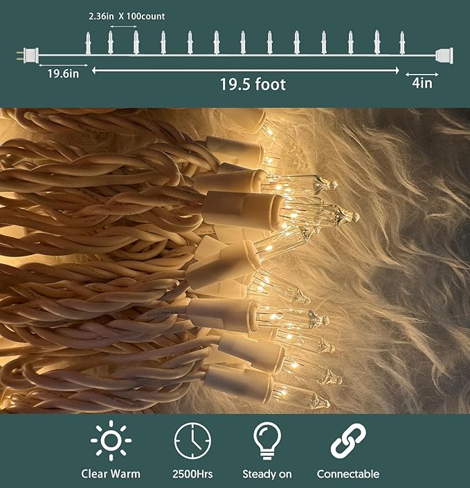 - Connectable Christmas Lights String: Each Christmas light has an end-to-end connector,can connect up to 5 of these string lights end to end for a total of 105 feet of lighted length.