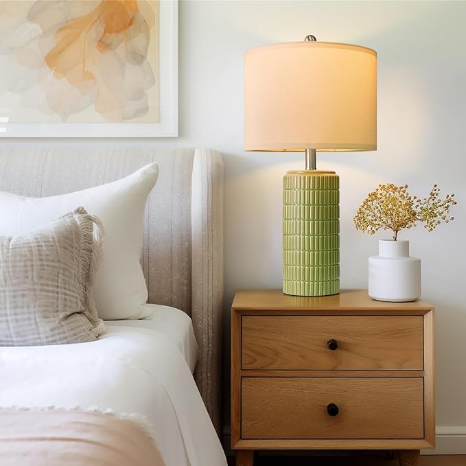 - Perfect Size: Lamp Height - 23’’ (H). Pokat green lamps for bedroom has a perfect size, making Pokat bedside lamps suitable for living room, hallway, console table, end table, nightstands or bedside, workspace, kids' room or home office. ( Bulb is not Included)