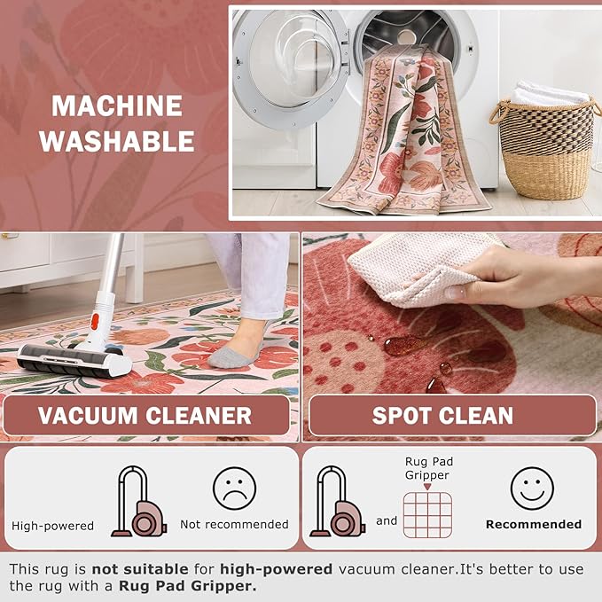- 【Floral Design for Timeless Elegance】: Featuring exquisite floral patterns, this area rug infuses a fresh, natural charm into your home, making it the perfect choice for elevating the ambiance of any space. Ideal for nursery, bedrooms, living rooms, and more.