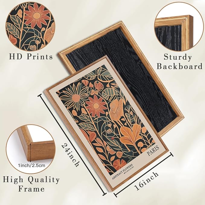 - 【Exquisite Floral Wall Art】This retro flower art work set featuring stunning botanical patterns with a vintage-modern aesthetic, this framed canvas wall art adds timeless elegance to any space.The floral pattern features a vintage-inspired design with key colors including orange, red, green, and brown, creating a rich layer of color.