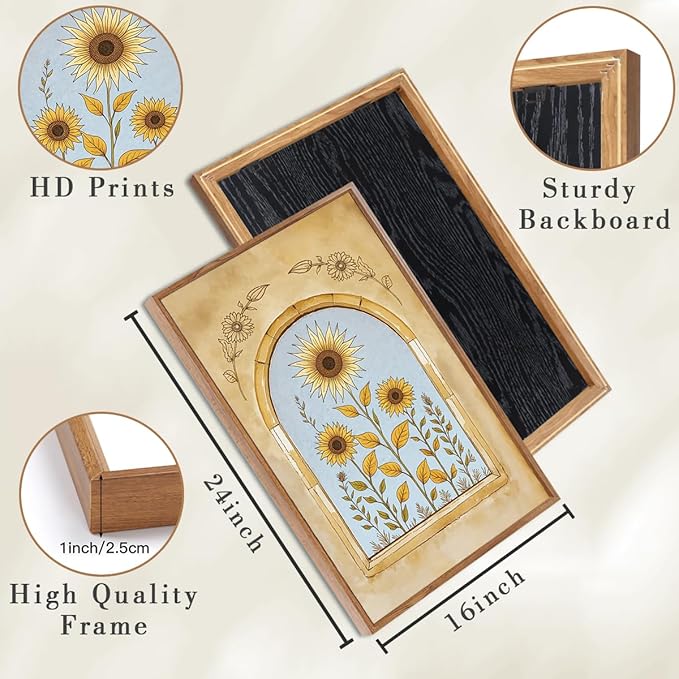 - 【Premium Quality Material】The vintage sunflower wall art is 16x24 inch.Each boho spiritual wall decor is made with high quality canvas and ink, and we utilize the latest printing technology to make the paintings fade-resistant. In addition, the sturdy frame and solid backing protect the painting from damage during transportation.
