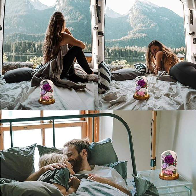 Forever Flowers with Symbolic Ladybugs: Preserved Flowers Gift for Women-Romantic Table Centerpiece-Valentines, Anniversary, Mothers Gifts for Her-Flowers for Delivery Prime (Purple)