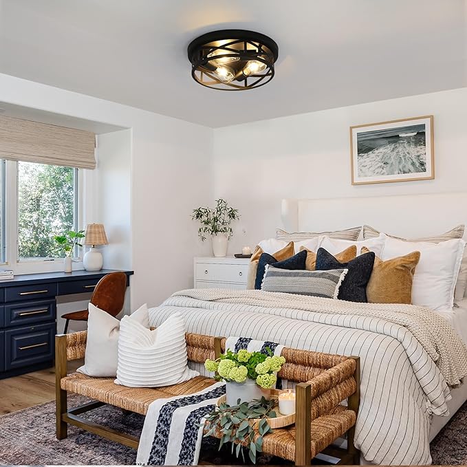 - Easy Installation -This modern farmhouse flush mount ceiling lamp comes with all hardware. Just take a few minutes you can finish the installation. Please contact us when you have any problems