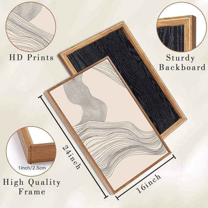 - 【Premium Quality】Each piece abstract painting is professionally printed on high-quality canvas, ensuring vibrant colors and long-lasting durability. The artwork is pre-stretched and comes framed in a sleek wood-colored frame,the sturdy frame and solid backing protect the painting from damage.