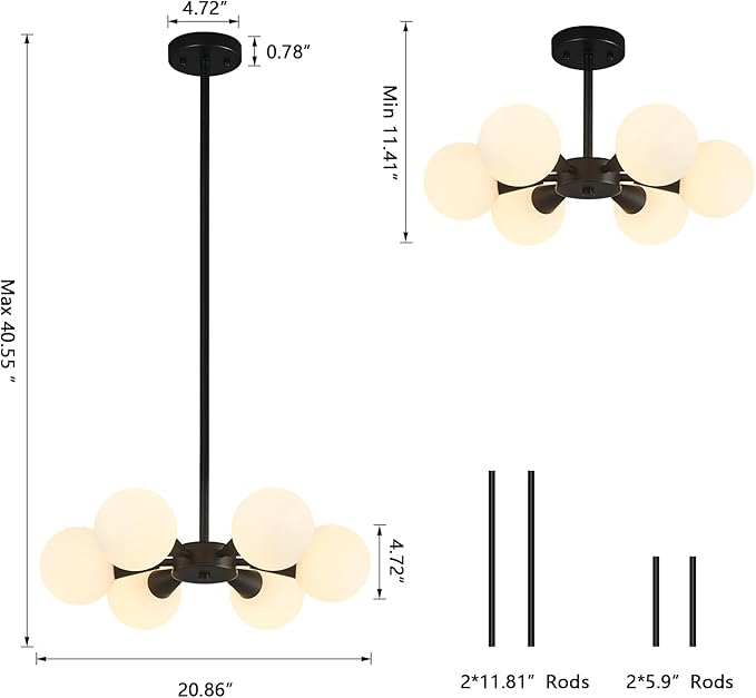 - 【Size of Modern Ceiling Lights】The length of the bedroom ceiling light is 20.86 inches, the width is 20.86 inches, the maximum height is 40.55 inches, and the sphere diameter is 4.72 inches