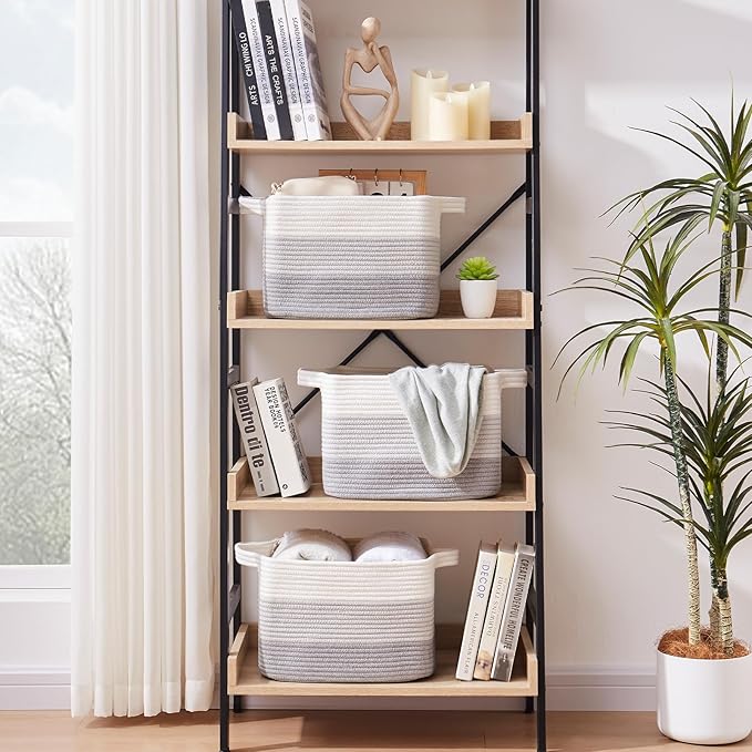 - Soft and Durable: Our shelf baskets are meticulously handcrafted from high-quality natural cotton rope that's ultra-soft and durable. No odor or sharp corners, making it safe for babies, and won't scratch your furniture and floor. Ideal for nurseries and playrooms