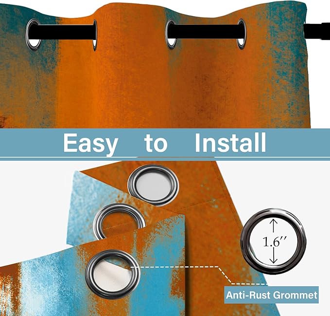 - [UNIQUE DESIGN]: The blue orange rust curtains has a abstract design. Rust decorative curtain, and it is an excellent decoration for living rooms, bedrooms and windows. Abstract pattern makes your bedroom elegant, adorn well for your home, office, apartment, business, dining room, kids room.