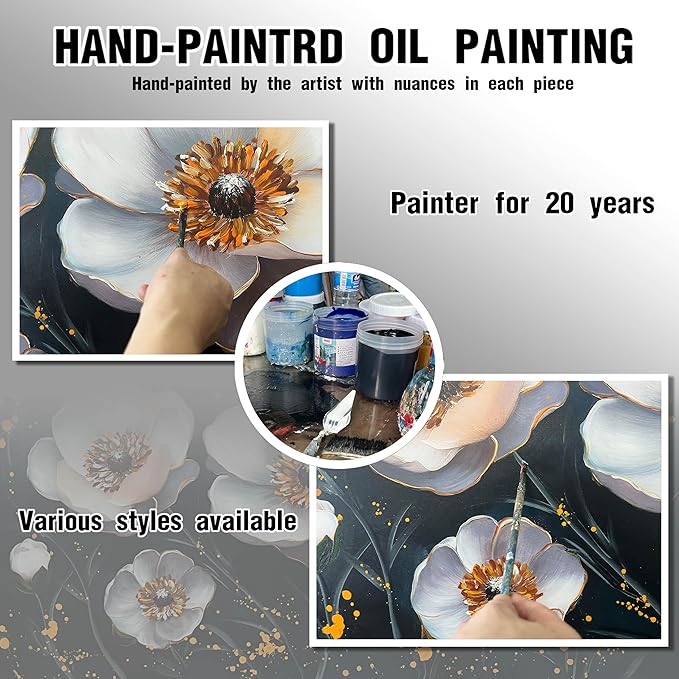 - 【Canvas Mural Size】Titled "Gold and White Flower" The size is 60" x 30". Since each painting is hand-painted, the actual painting may differ slightly from the product image. Due to different monitor brands, the actual wall painting color may be slightly different from the product picture.