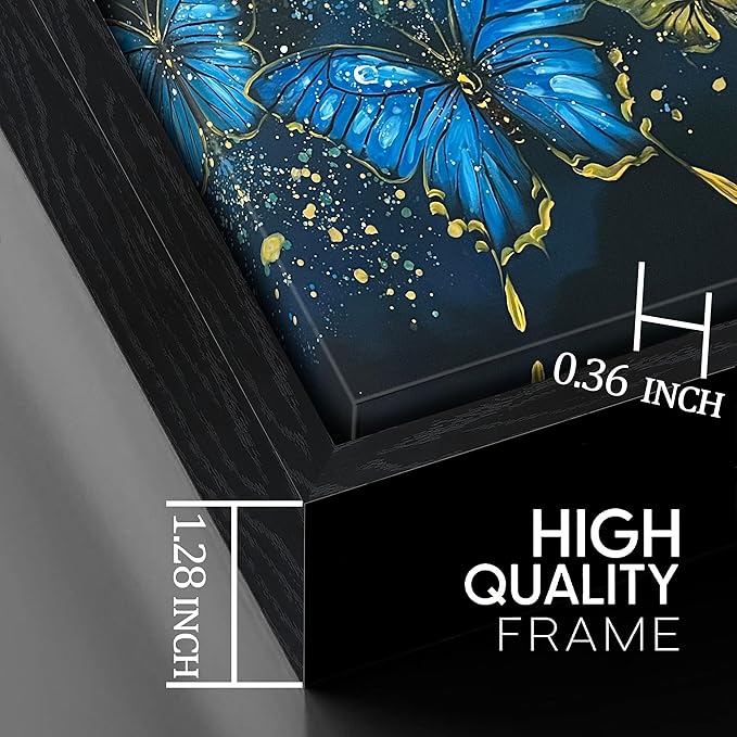 Bedroom Butterfly Pictures Wall Decor for Women - Gold and Blue Wall Art for Living Room - Framed Hand Painted Oil Paintings on Canvas Wall Art Size 29" x 59"