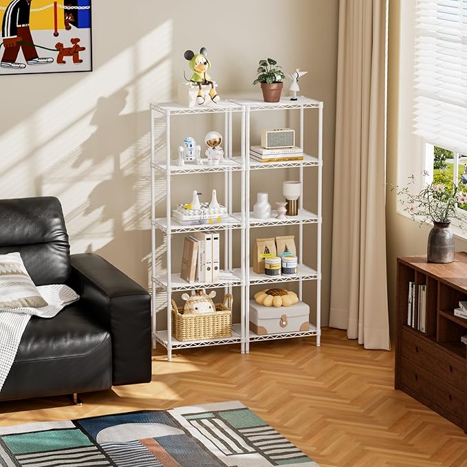 SINGAYE 5 Shelves Storage Shelf Wire Closet Bathroom Organizers Metal Pantry Kitchen Small Garage Shelving Unit Laundry Room Organization Home Corner Rack Estantes para Cocina White 10" Dx16 Wx55”H