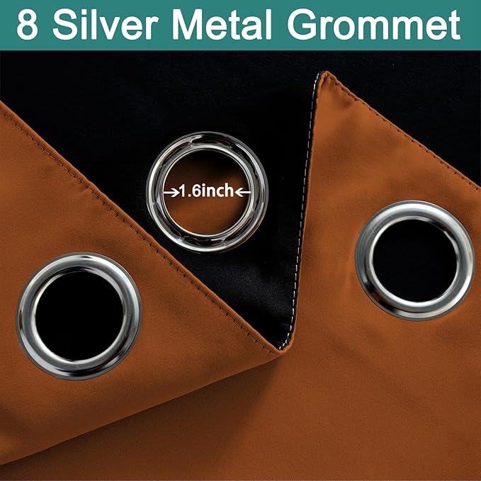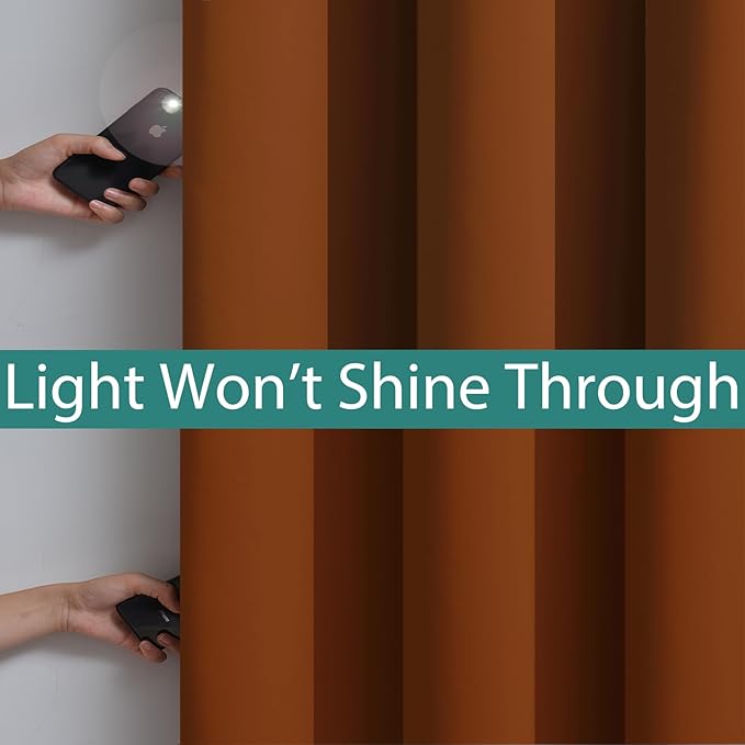 Yakamok Orange 100% Blackout Curtains, Total Blackout Lined Curtain Panels for Bedroom, 2 Thick Layers Grommet Top Thermal Insulated Blackout Drapes for Living Room(52Wx63L, Burnt Orange, 2 Panels)