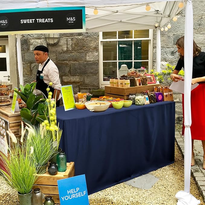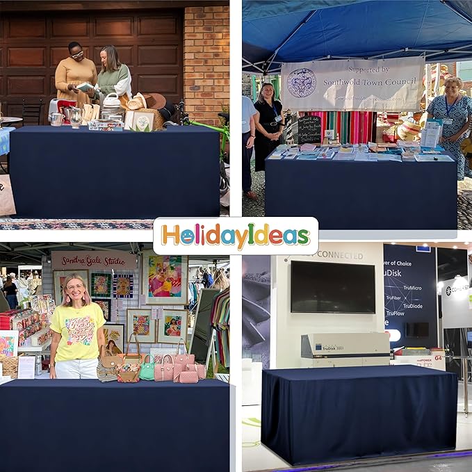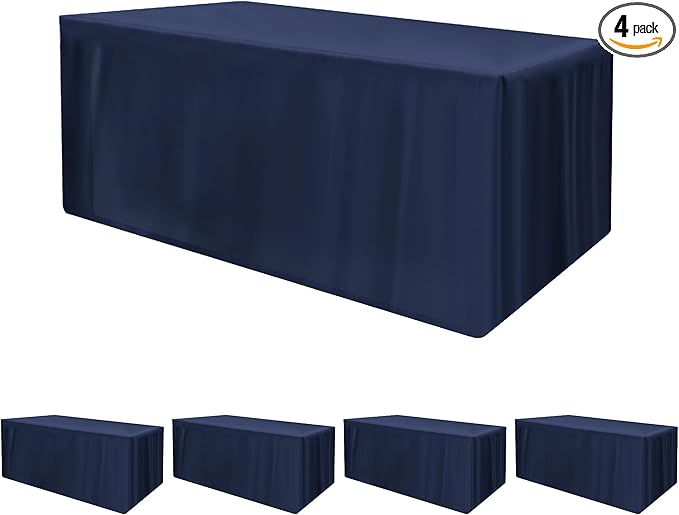 HolidayIdeas Fitted Tablecloths for 8 Foot Rectangle Table, Full Coverage Table Cover 30x96 Inch for Vendor Booth Display, Banquet, Trade Show, Navy Blue, 4 Pcs