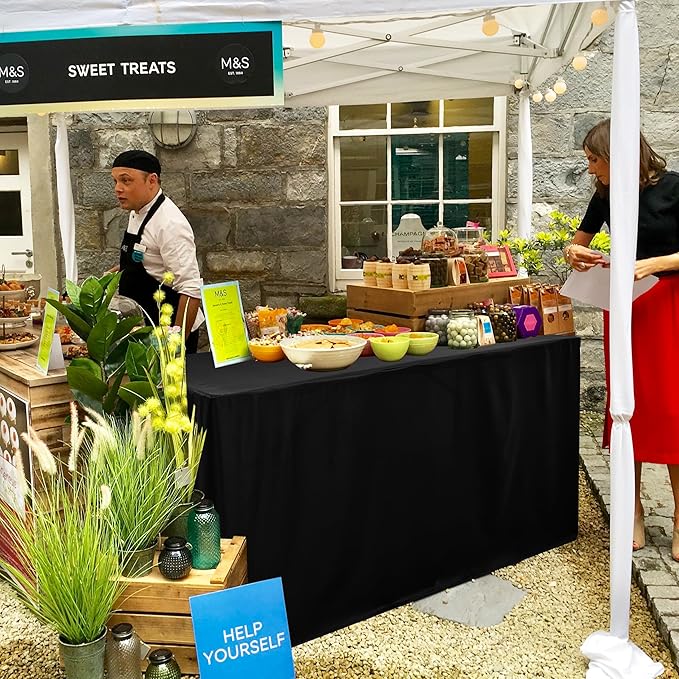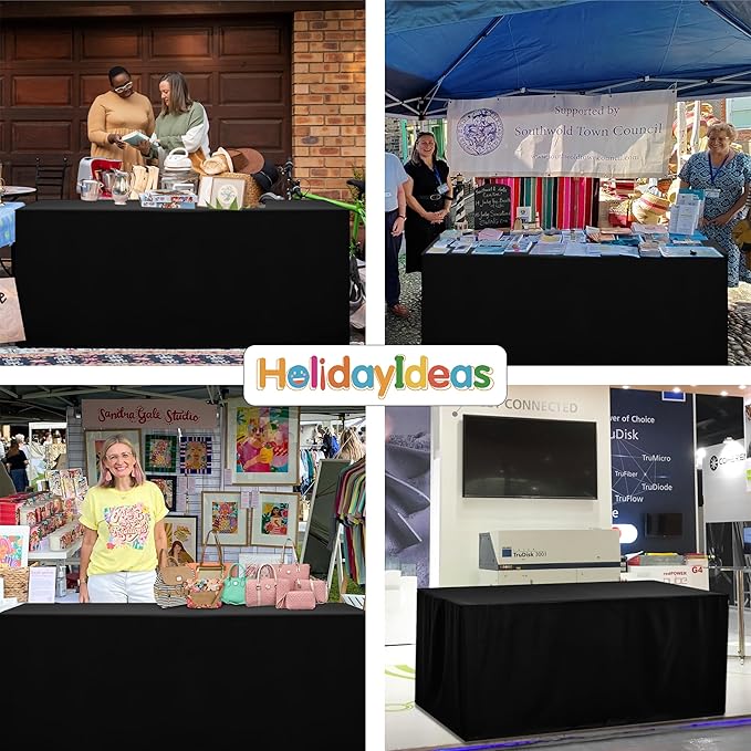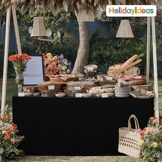 HolidayIdeas Fitted Black Tablecloths for 6 Foot Rectangle Table, Wrinkle Resistant Washable Table Cover 72x30 Inch for Vendor Booth Display, Banquet, Trade Show, 4 Pcs