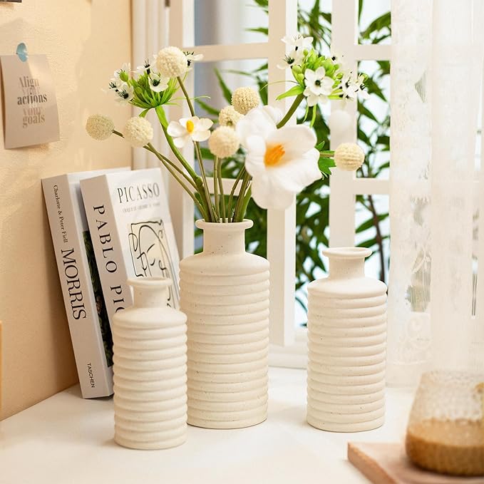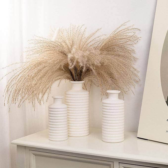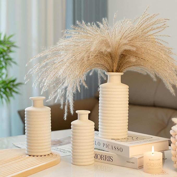 Ceramic Vase Set, Cream White Vases Home Decor, Boho Rustic Farmhouse Vase for Pampas Grass Fresh Flowers, Modern Vases for Living Room, Bedroom, Bathroom, Entryway, Dresser Table Decor