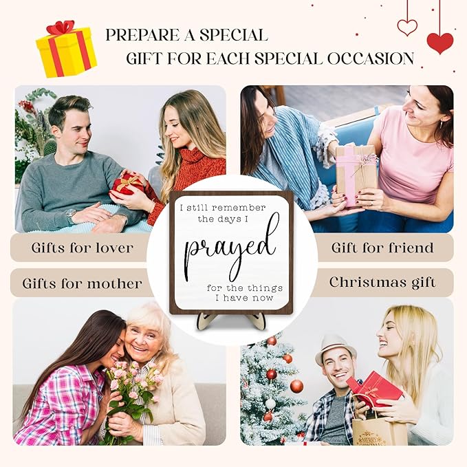 I Still Remember the Days I Prayed Wooden Sign, Christian Sign Home Decor Wooden Plaque for Rustic Home Farmhouse Office Living Room Desk Shelf Decor (White&Brown, 5.9x5.9inches)